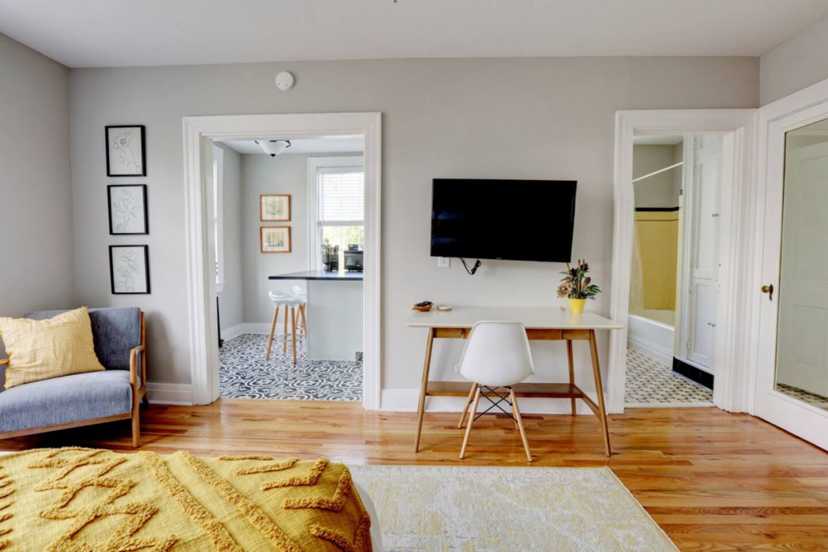 This 1930's era brick building has been stylishly renovated with an eye to historic preservation. It houses ten well-appointed monthly rental units that are perfect for legislators, government contractors, digital nomads, those on temporary assignment and true lovers of the bourbon trail. Distiller's Guest House is your home from home.