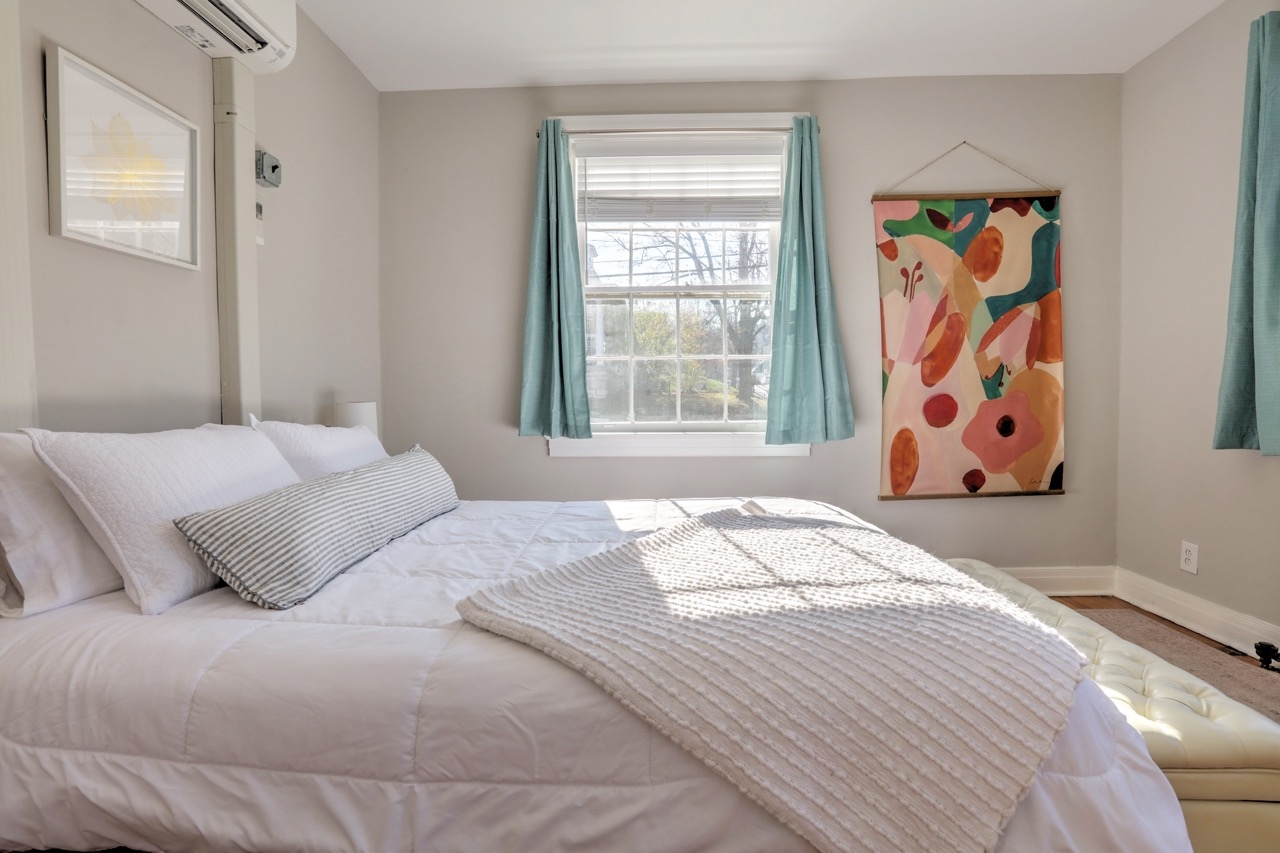 Stay in a beautifully preserved 1930s brick gem just blocks from the Kentucky State Capitol and downtown Frankfort. This stylishly renovated one-bedroom features a separate living room, queen bed with plush linens, and a charming Art Deco bath restored in 2026. Enjoy an updated kitchen, blackout curtains, sound-insulated doors, and a dedicated workspace for peaceful, comfortable stays.