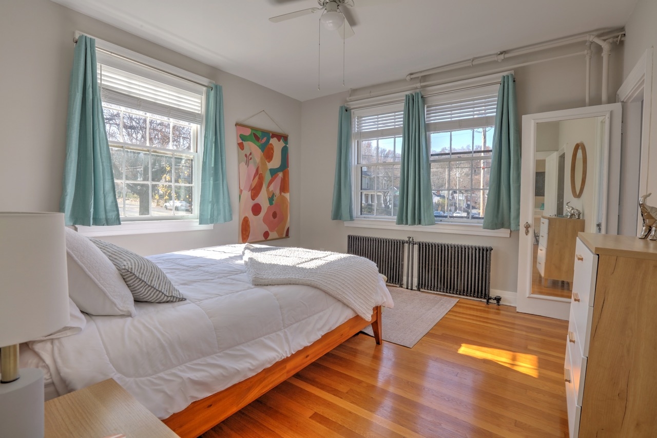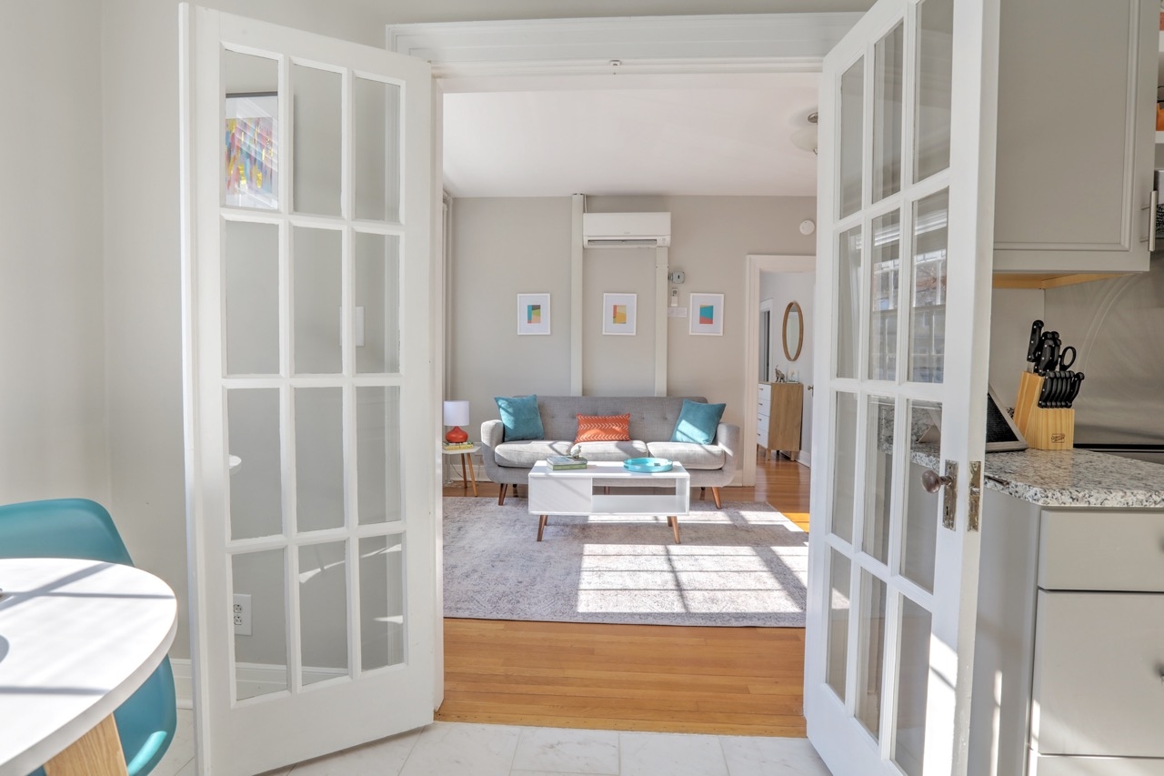 This thoughtfully designed one-bedroom apartment offers the comfort of a separate living room and a peaceful bedroom featuring a queen-sized bed dressed in plush, fluffy linens. The newly-restored Art Deco bathroom is stocked with hotel-quality towels, and the freshly remodeled kitchen includes everything you need to feel right at home. Blackout curtains in the bedroom ensure a restful night’s sleep.