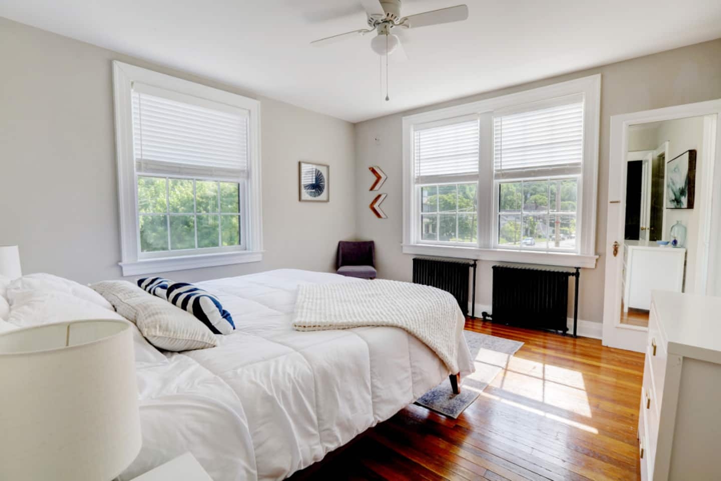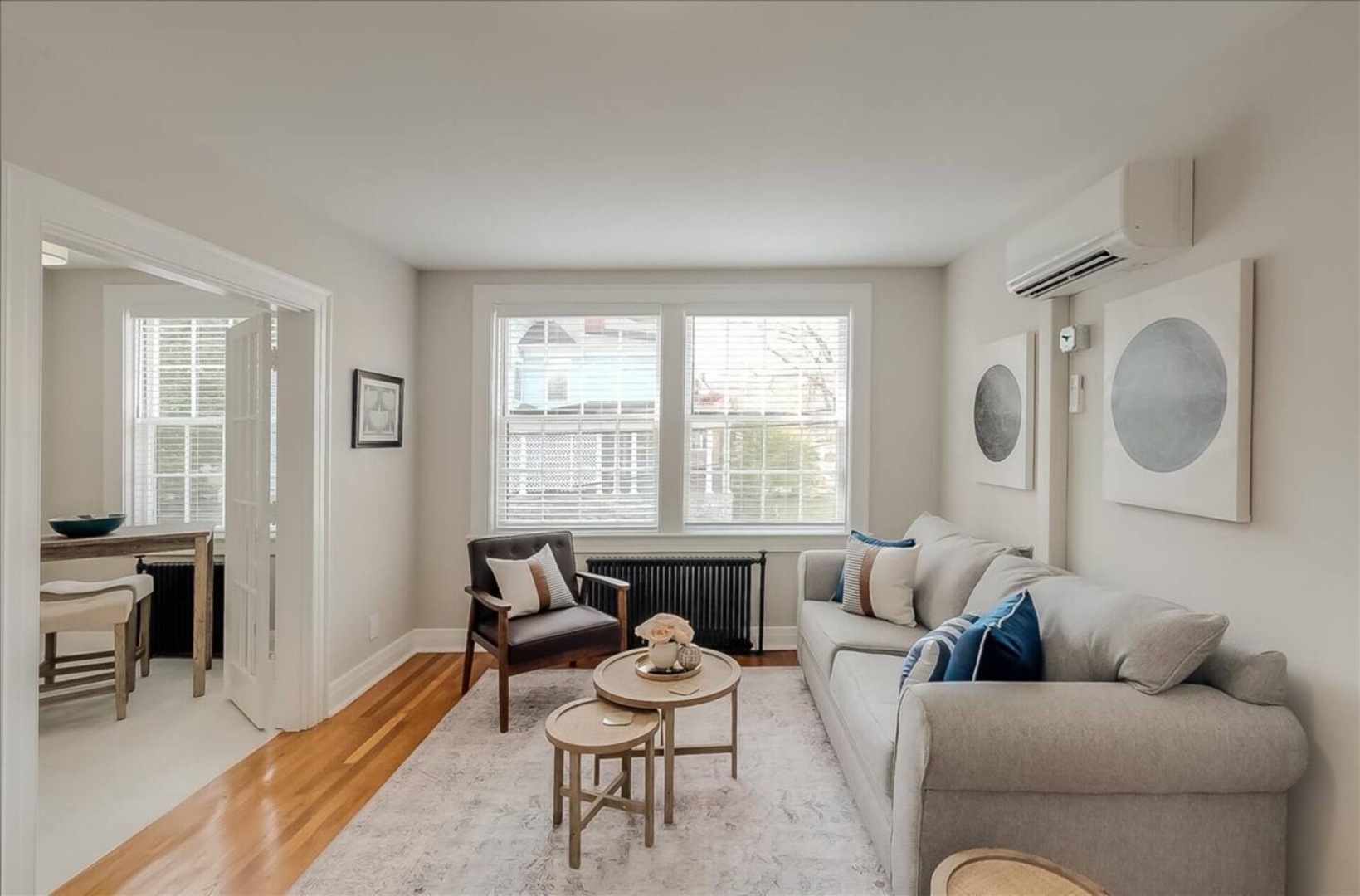 This historic gem is a few blocks in either direction from the State Capitol and downtown Frankfort. The 1930's brick building is stylishly renovated and historically preserved. This one-bedroom apartment has a separate living room and a bedroom with king-sized bed and fluffy linens. The carefully restored Art Deco bathroom has hotel-quality towels. The freshly remodeled kitchen invites you to sip coffee. Blackout curtains and sound-insulated doors will help you sleep peacefully.