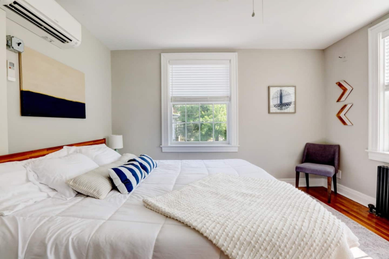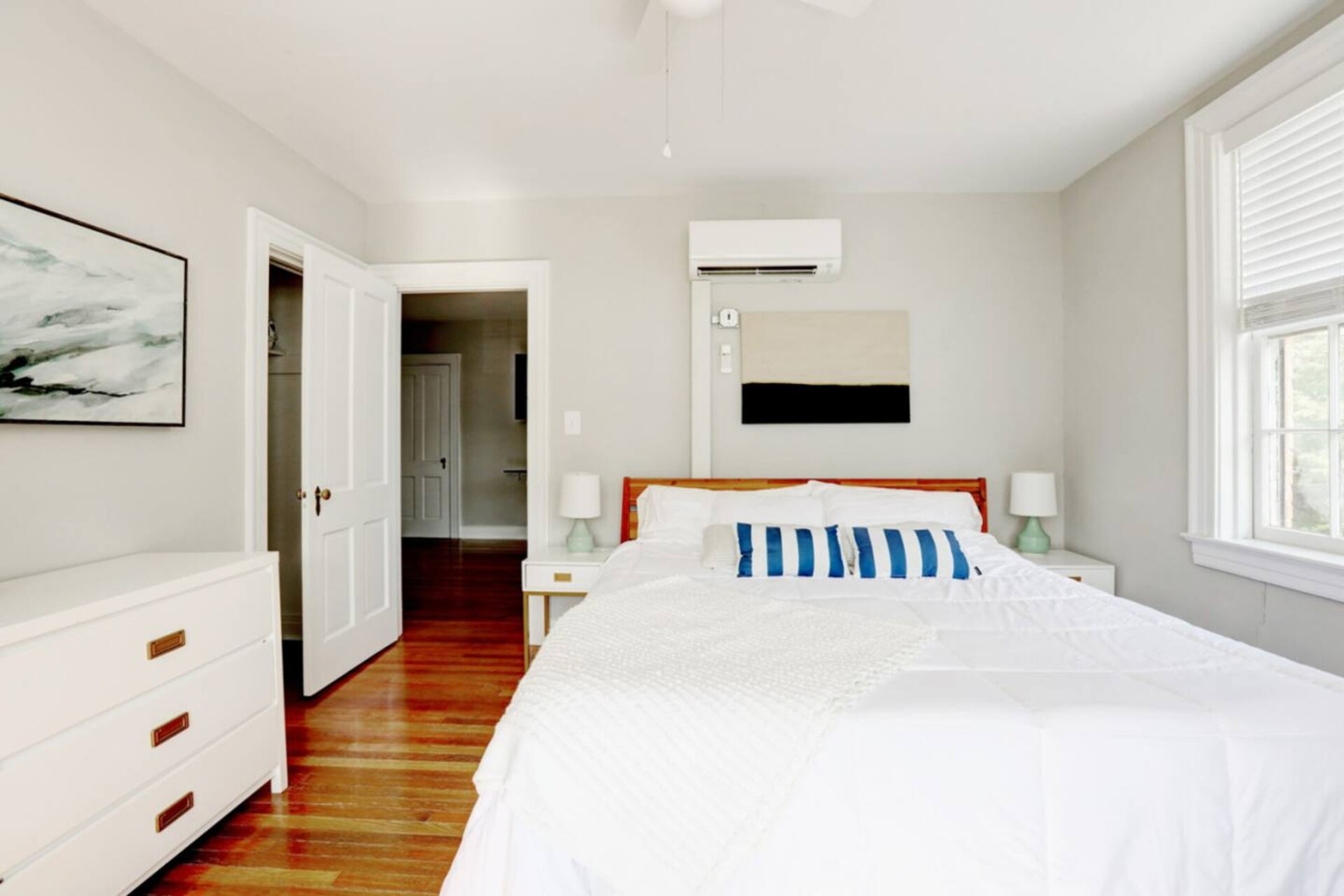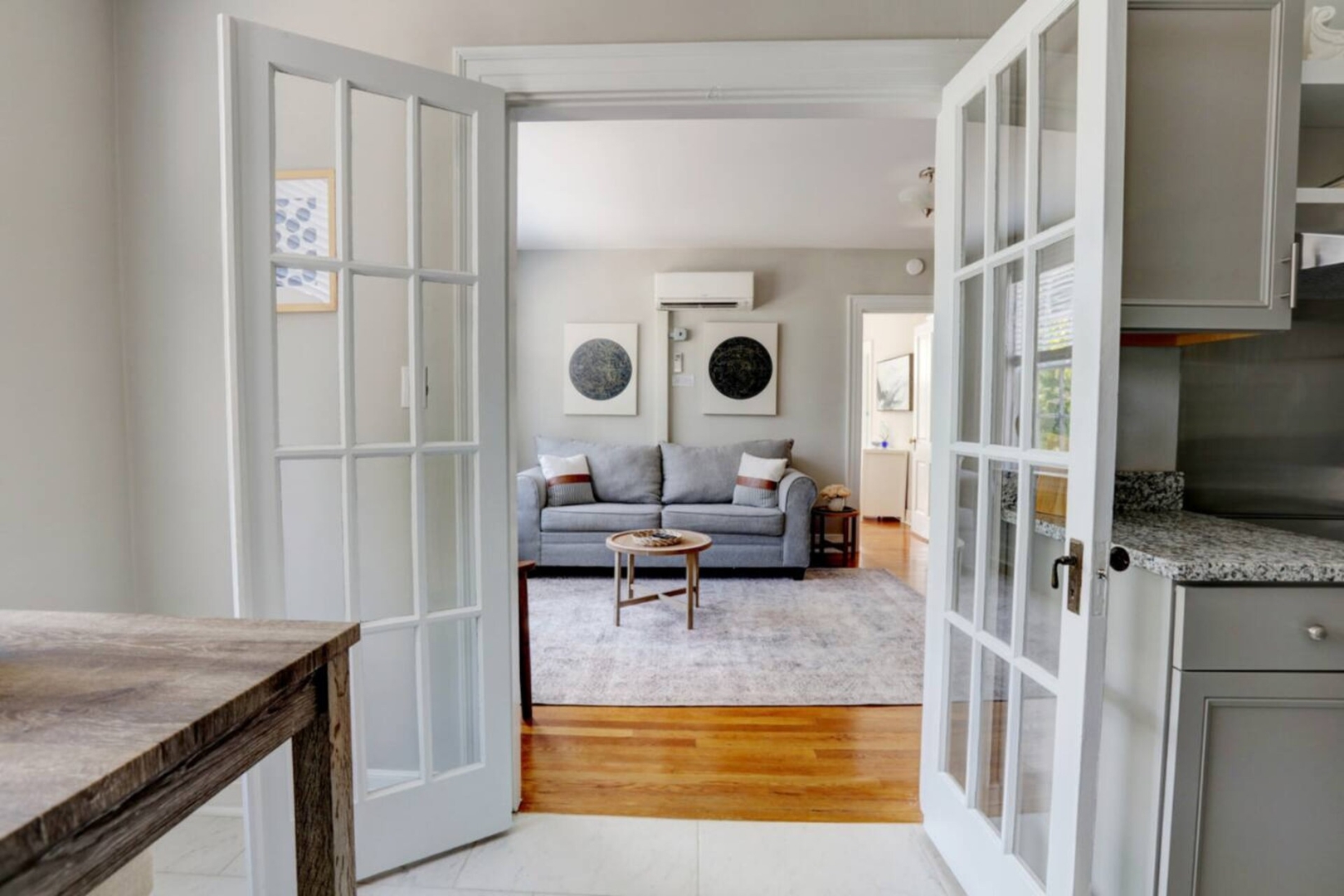 This one-bedroom apartment has a separate living room. The bedroom features a king-sized bed with fluffy linens. The art-deco style bathroom is stocked with hotel-quality towels. The freshly remodeled kitchen has all of the essentials you need to feel at home.